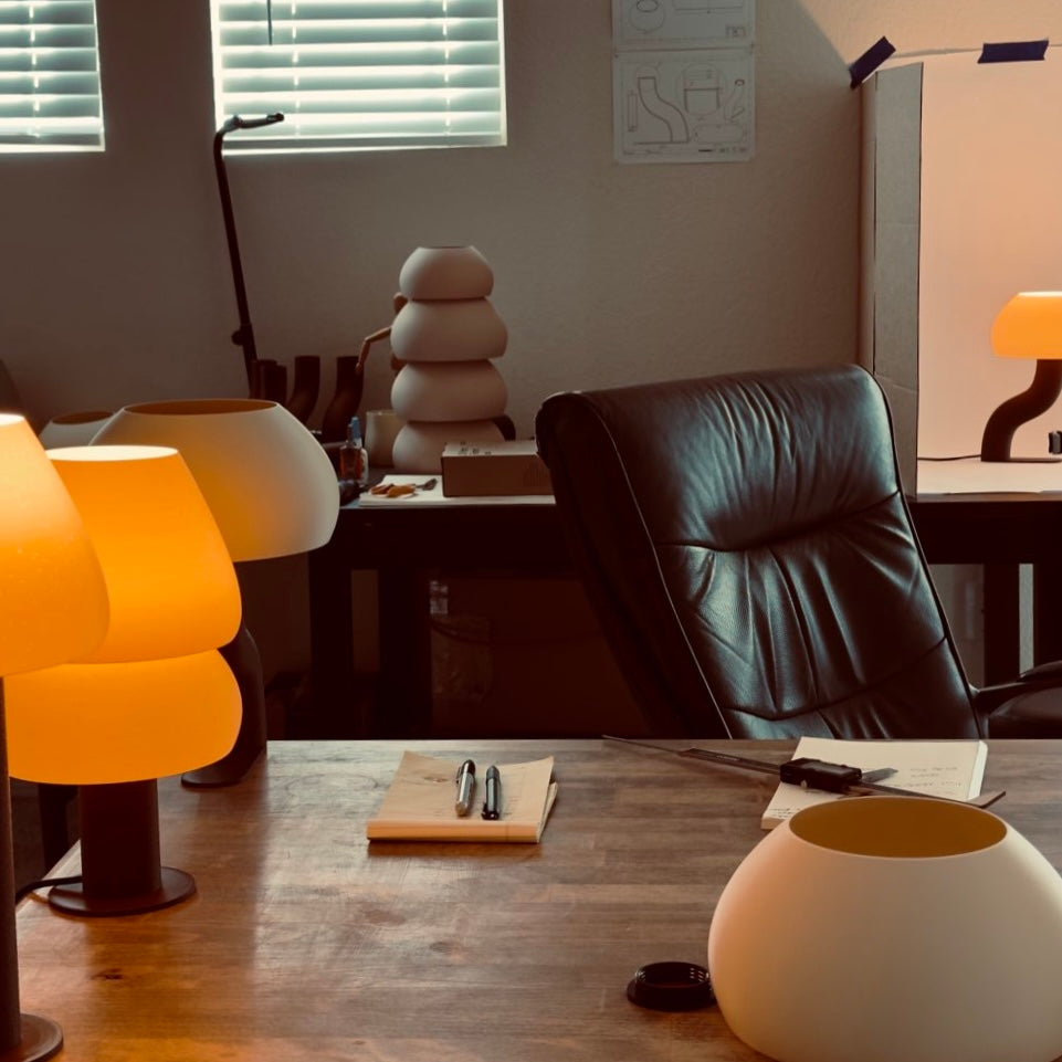 Frustrated by the uniformity of many lighting options and the high costs of truly standout pieces, Karsten turned to 3D printing. This innovative approach allows us to produce lamps on-demand, keeping costs accessible while embracing the unique characteristics of the process, like visible layer lines, natural light diffusion, and subtle streaking, that give each shade its own distinctive “thumbprint.” No two pieces are exactly alike, turning every lamp into a one-of-a-kind work of art.